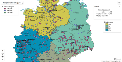 Legenden helfen die Darstellungen in der Karte besser zu verstehen. Diese werden im EasyMap Xplorer an verschiedenen Stellen angeboten und sind nur dann sichtbar, wenn die dazugehörige Kartenebene ebenfalls sichtbar geschaltet ist. Ist die Kartenebene oder Analyse aktiviert, wird jedoch aufgrund des Zoombereiches aktuell nicht dargestellt, so wird die entsprechende Legende ebenfalls nicht angezeigt.